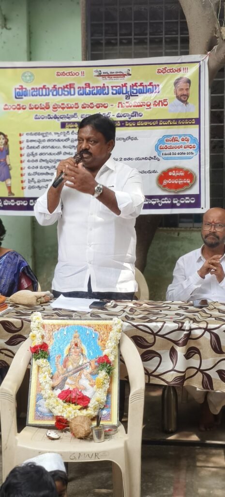 కుత్బుల్లాపూర్(సూర్య ప్రభా)మనబడి కార్యక్రమనీ ముఖ్య మంత్రి రేవంత్ రెడ్డి నాయకత్వంలో తెలంగాణ ప్రభుత్వం చాలా ప్రతిష్టాత్మంగా తీసుకొని తెలంగాణ ఏర్పడిన తర్వాత మొదటి సారి కాంగ్రెస్ ప్రభుత్వం ఈ యొక్క చక్కటి కార్యక్రమం కుత్బుల్లాపూర్ నియోజకవర్గం కాంగ్రెస్ పార్టీ ఇంచార్జి కోలన్ హన్మంత్ రెడ్డి ఆదేశాల మేరకు 127 డివిజన్ కాంగ్రెస్ పార్టీ అధ్యక్షులు బి.శివ కుమార్ ఆధ్వర్యంలో గురుమూర్తి నగర్ పాఠశాలలో నిర్వహించారు.అనంతరం హన్మంత్ రెడ్డి మాట్లాడుతూ పాఠశాలకు సంబంధించిన పాఠ్యపుస్తకాలను స్టూడెంట్స్ కూర్చోడానికి కార్పొరేట్ స్థాయి బెంచులు, ప్రైవేట్ పాఠశాల ఏ మాత్రం తక్కువ కాకుండా అన్ని మౌలిక సదుపాయాలు ఈ యొక్క కాంగ్రెస్ ప్రభుత్వం ప్రభుత్వ పాఠశాలలకు అందుబాటులోకి తేవటం జరిగింది .అదే విధంగా పాఠశాల కరస్పాండెంట్ చంద్రయ్య, నాగ వాణి ,రాఘవేంద్ర రెడ్డి పాఠశాల లో చదువుతున విద్యార్థులుకు త్రాగు నీటి గురించి మినరల్ వాటర్ ప్లాంట్ మరియు బోర్ వెల్ మరియు స్కూల్ షెడ్ గురించి మరియు పొద్దునే స్కూల్ ప్రేయర్ గురించి మైక్ సెట్ ఈ మౌలిక సదుపాయాలు గురించి కోలన్ హనుమంత్ రెడ్డి కి కరస్పాండెంట్ కీ వినతి పత్రం ఇవ్వడం జరిగింది తక్షణమే స్పందించివారి కోరిక మేరకు సంబంధించిన అధికారులతో మాట్లాడి సాధ్యమైనంత తొందరలో తక్షణమే అమలు చేయాలి అని ఆదేశించారు. బడిబాట కార్యక్రమంలో భాగంగా ఆయన చేతుల మీదుగా చిన్నపిల్లలకు అక్షర అభ్యాసం చేయించి పాఠ్యపుస్తకాలు పంపిణీ చేశారు.ఈ కార్యక్రమంలో మున్సిపల్ వైస్ చైర్మన్ జయరాం డివిజన్ అధ్యక్షులు గణేష్, లాయక్ , సోషల్ మీడియా కోఆర్డినేటర్ తైలం శ్రీనివాస్, మైనార్టీ అధ్యక్షులు డివిజన్ ఉస్మాన్, సీనియర్ కాంగ్రెస్ నాయకులు భాస్కర్ రెడ్డి, ఎల్లయ్య, నయీమ్, గురుమూర్తి నగర్ సొసైటీ నుండి రాణి, హర్షద్, ఓంకార్ రెడ్డి, శ్రీనివాస్ ముదిరాజ్, భాస్కర్ చారి, వెంకటేష్, శ్యామ్ సుందర్, సల్మాన్, డివిజన్ మహిళా కాంగ్రెస్ అధ్యక్షురాలు మాధవి రాణి, జానకి, భాగ్య, లక్ష్మి రెడ్డి, ఆరిఫ్, అప్సర్ పాల్గొన్నారు.